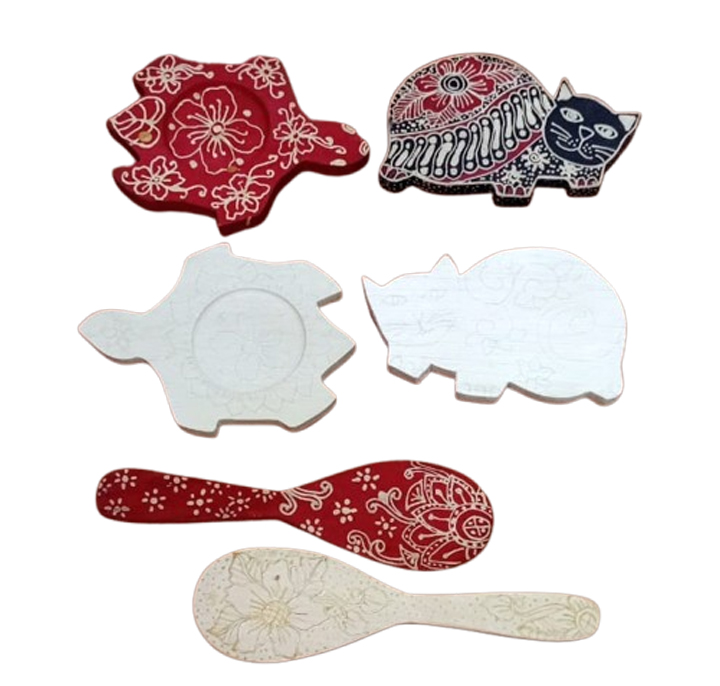 Media kayu, canting, pewarna, malam, kompor batik